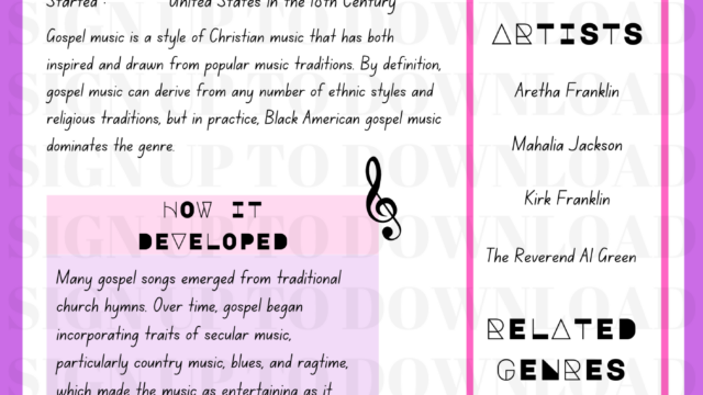 Gospel music is a style of Christian music that has both inspired and drawn from popular music traditions. Many gospel songs emerged from traditional church hymns. Over time, gospel began incorporating traits of secular music—particularly country music, blues, and ragtime—which made the music as entertaining as it was reverent. Gospel’s relationship with secular music ran in both directions; many gospel singers and soloists began their musical journeys singing in church before transitioning to popular music.
